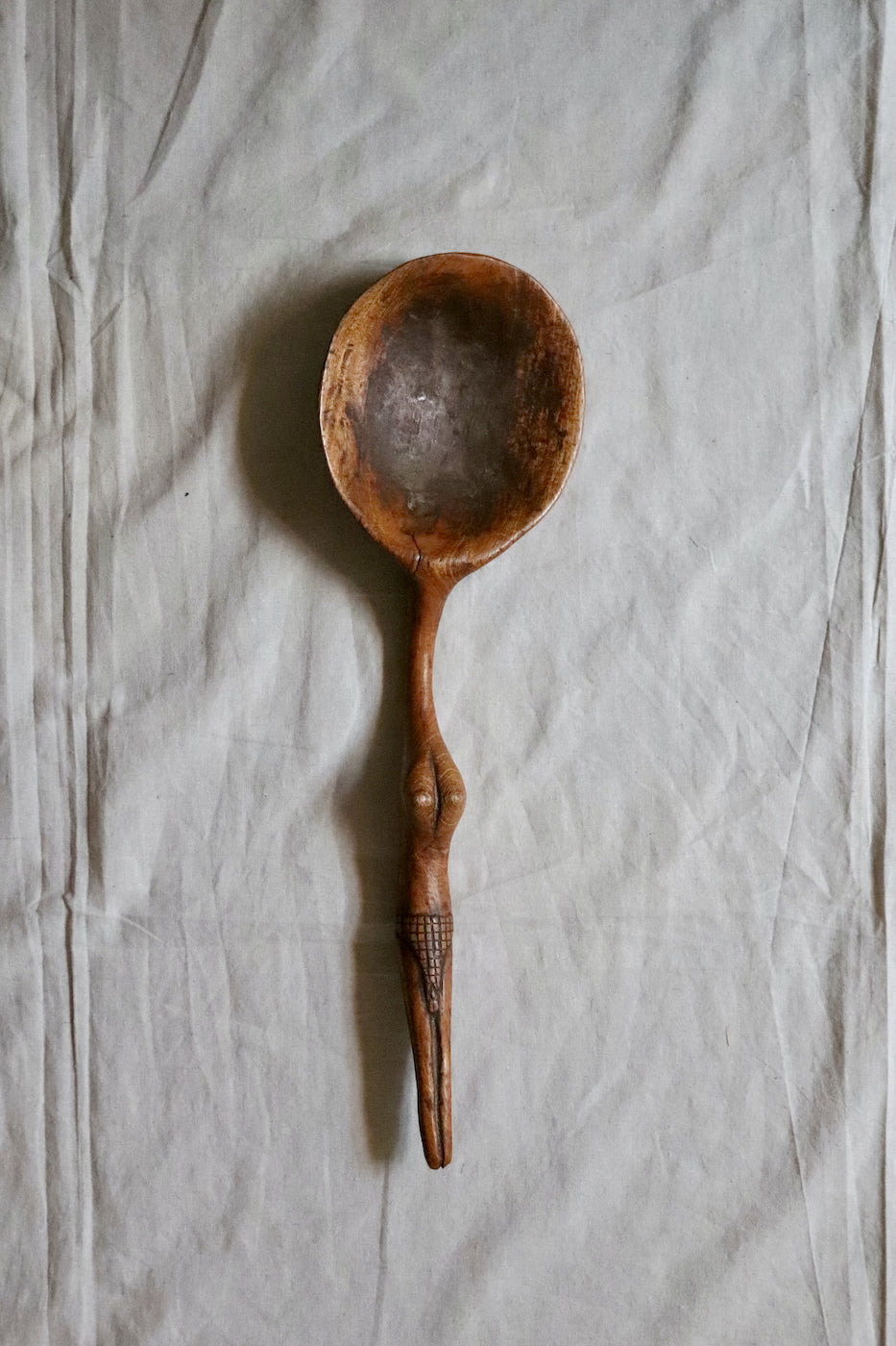 A fertility spoon is a ritual or symbolic object used in various African cultures, particularly among communities in West and Central Africa, as a representation of fertility, abundance, and the continuity of life. Traditionally carved from wood, these spoons are often oversized.