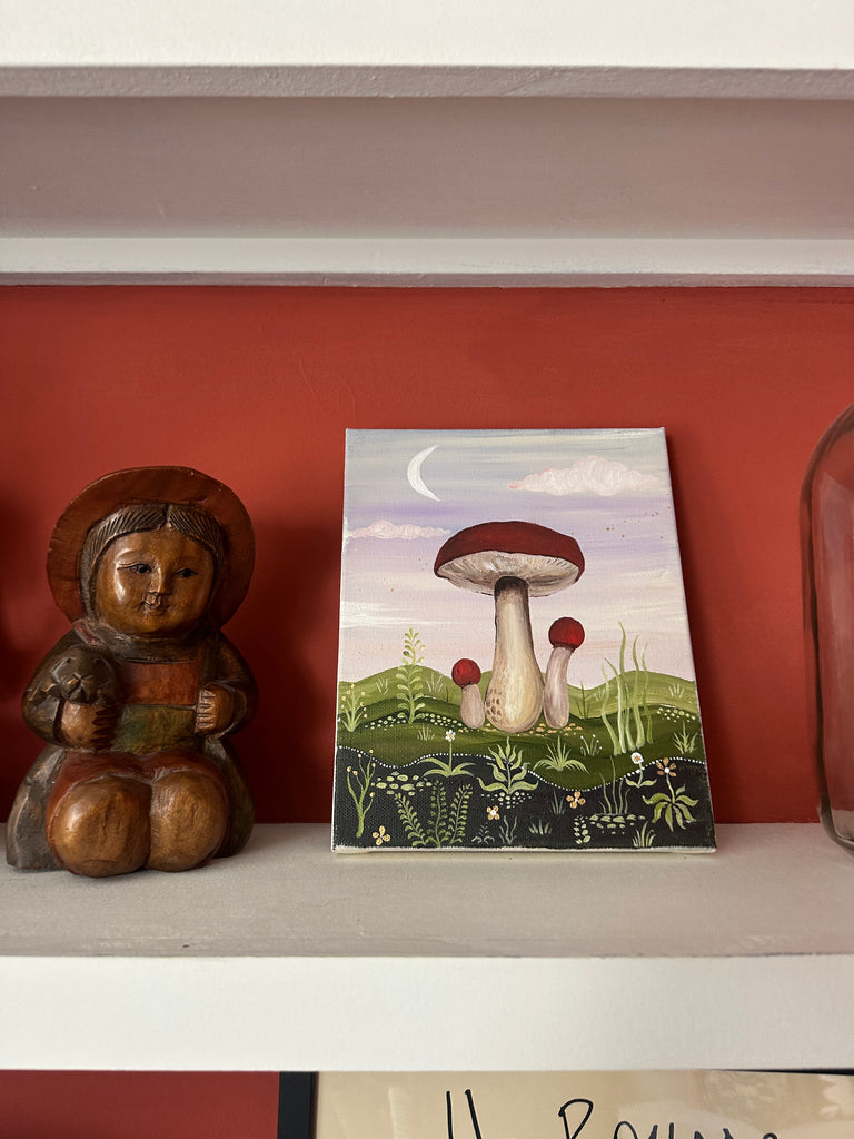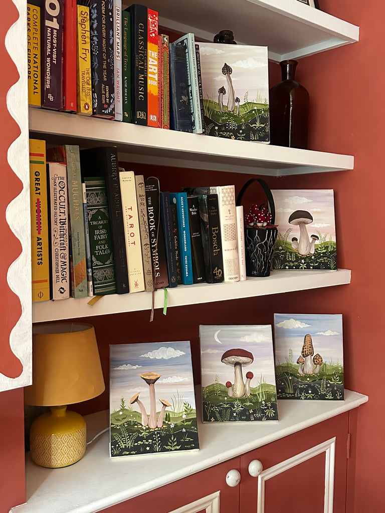 ‘The Sickener’ by Bell Hutley carries connotations of forbidden fruit. Its striking red colour makes it one of the most visually captivating mushroom species, yet it tempts the eye rather than the palate. The Sickener’s story echoes that of Snow White and the apple - a subtle nod to Bell’s ongoing love for fairy tales.