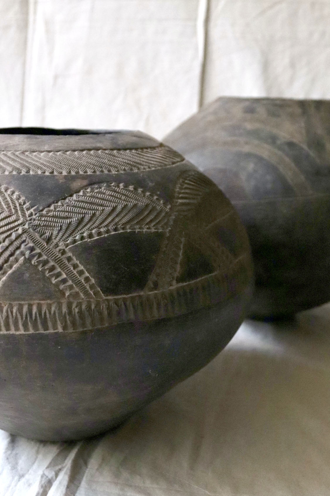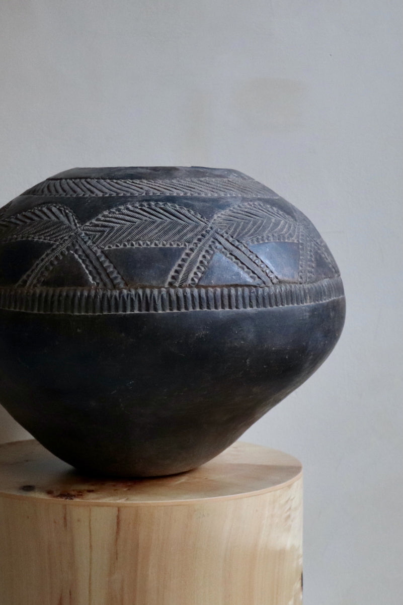 Zulu pots are traditional clay vessels handcrafted by Zulu women in Kwazulu Natal, South Africa, used for cooking, storage, and brewing beer in social and ceremonial settings. Often decorated with patterns or textures, they reflect both artistry and cultural heritage and are now appreciated as collectible pieces.