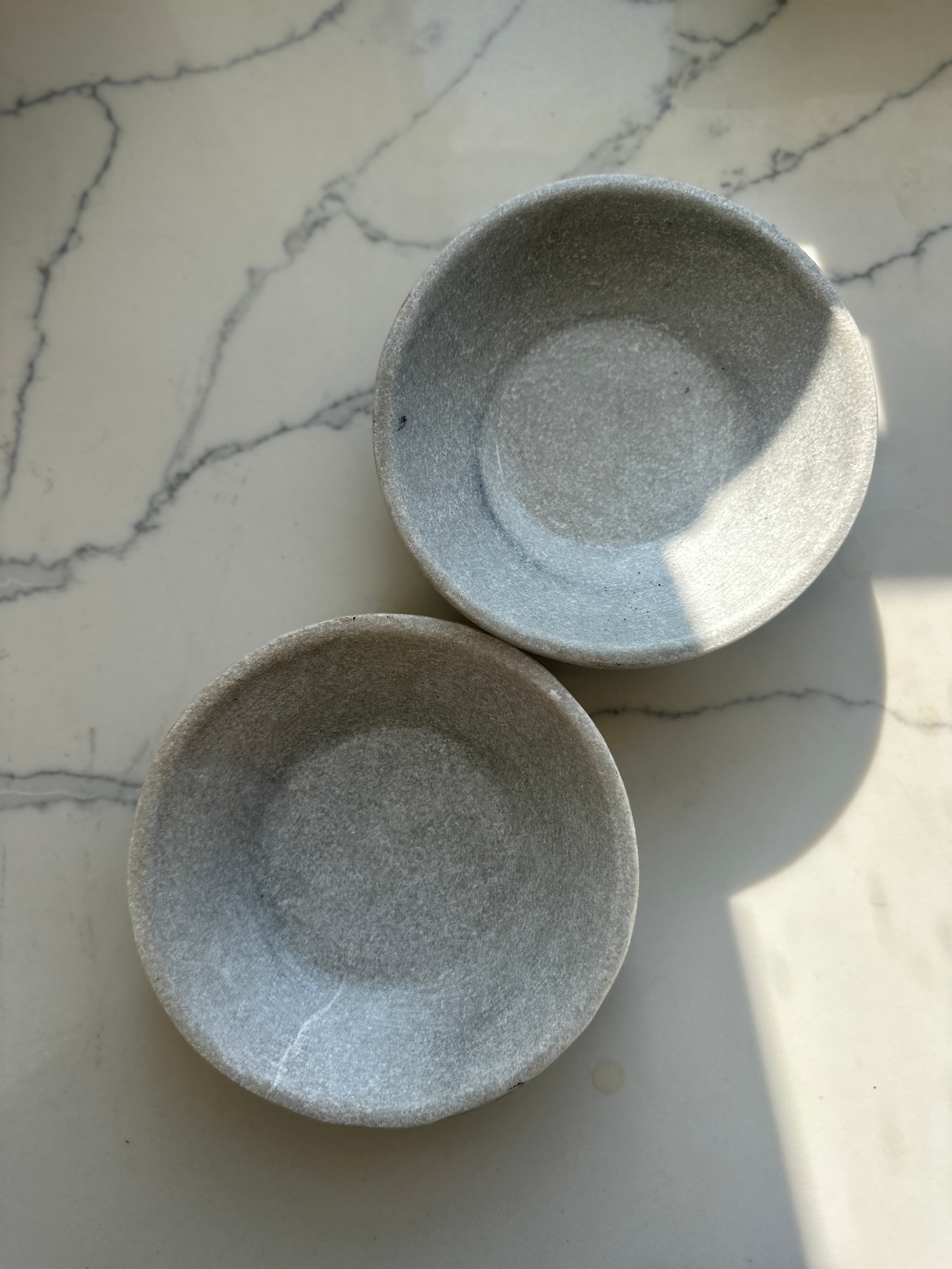 Each piece is hand carved, so no two are exactly the same. Natural variations, markings, and small imperfections are part of the stone and handmade process, giving every dish its own unique character. Please note these dishes are heavy due to the solid marble.