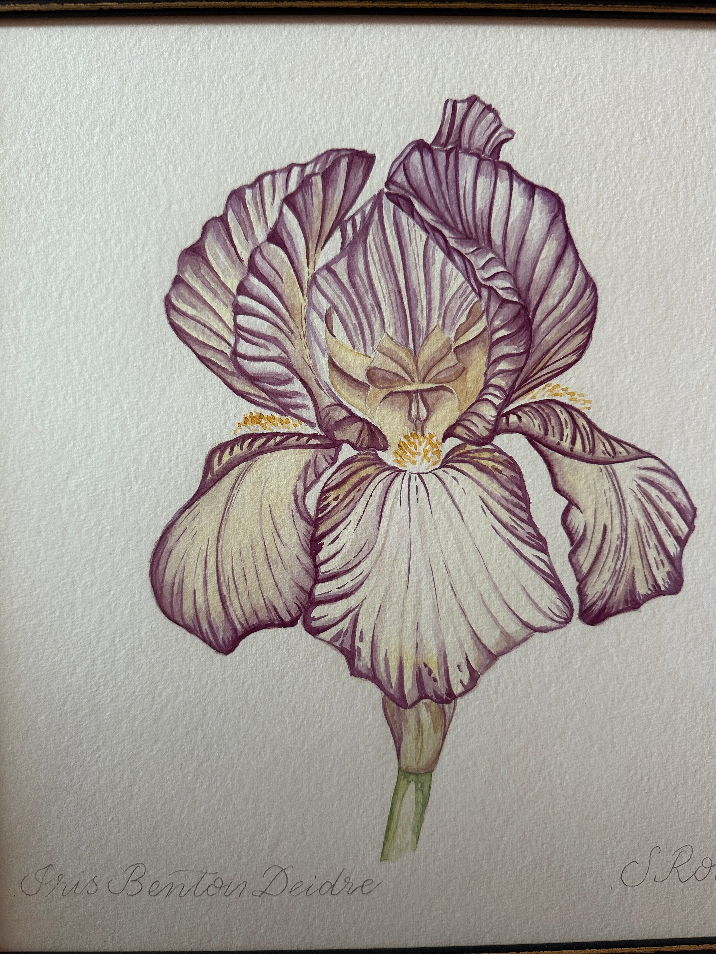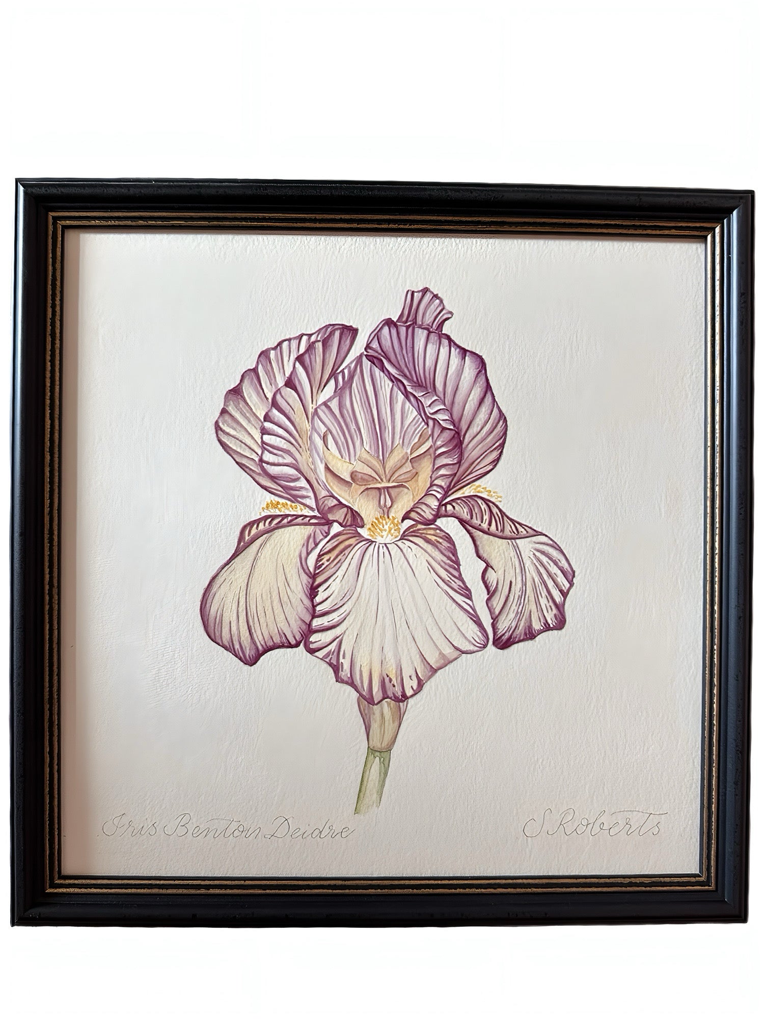 A beautiful botanical study of this Ivory Iris with violet shades. A variety bred by the late artist Cedric Morris at his home in Benton Hall. This work is part of a set of 6 Irises that are wonderful individually or as a set.