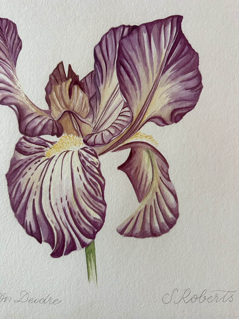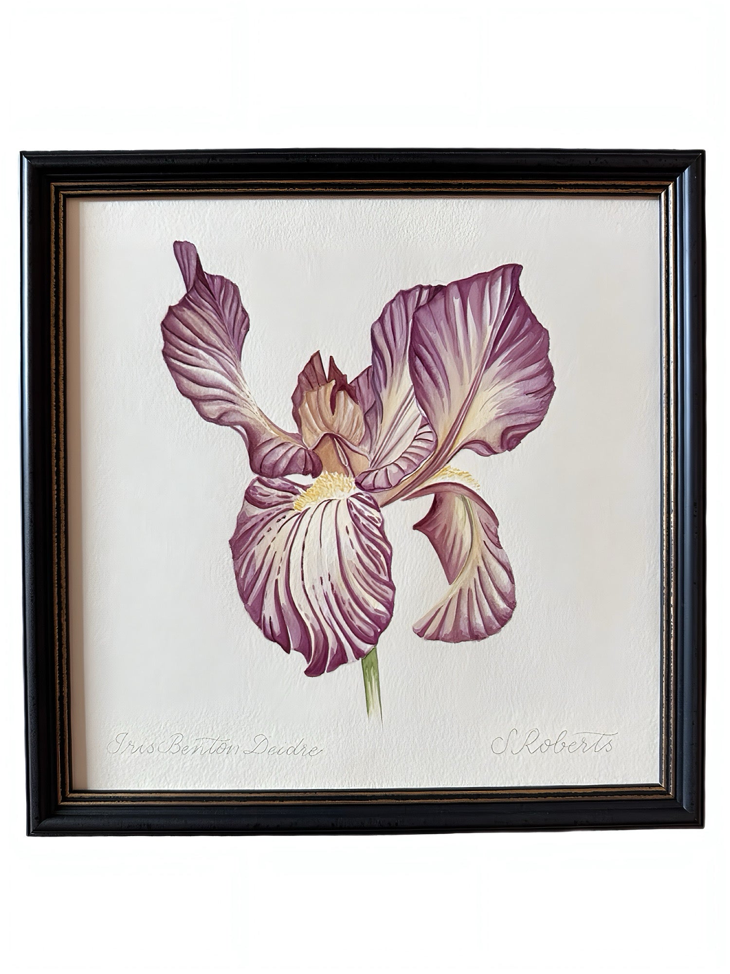 A beautiful botanical study of this Ivory Iris with violet shades. A variety bred by the late artist Cedric Morris at his home in Benton Hall. This work is part of a set of 6 Irises that are wonderful individually or as a set.