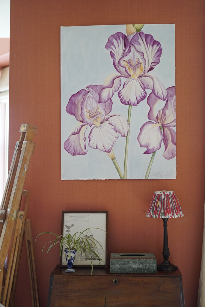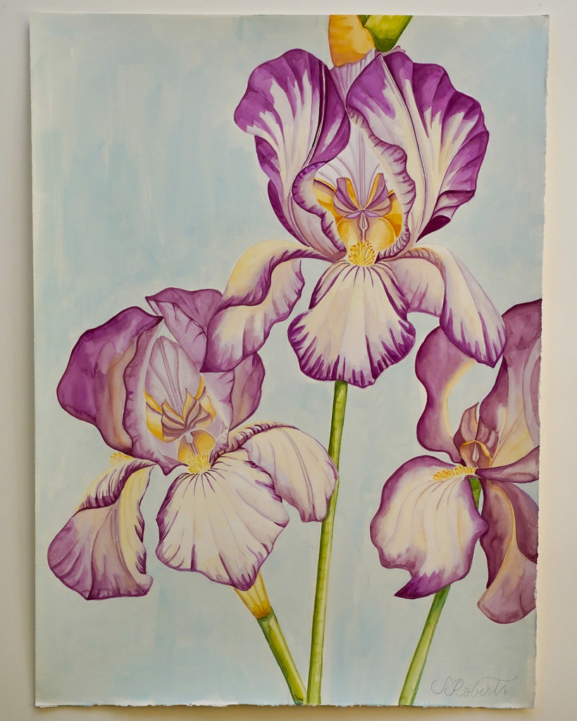 Capturing a selection of Irises together as they grow in the garden on multiple plants and stems. With a playful interaction between the stems like dancers in a troop. These Irises have a delicate ivory petals with dramatic violet edging.